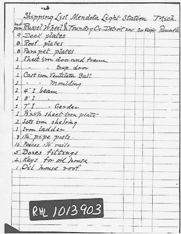 The following information is transcribed from an official report dated June 20, 1930 found in the National Archives in Washington, D.C. prepared by Charles A. Park, Superintendent of Lighthouses, 3760 East Jefferson, Detroit, Michigan.